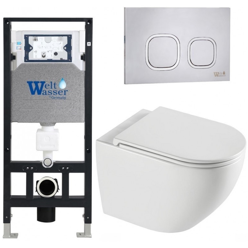 Подвесной унитаз с инсталляцией WeltWasser Amberg 506 / Merzbach 043 XL GL-WT / Amberg RD-MT CR 10000013778 белый глянцевый