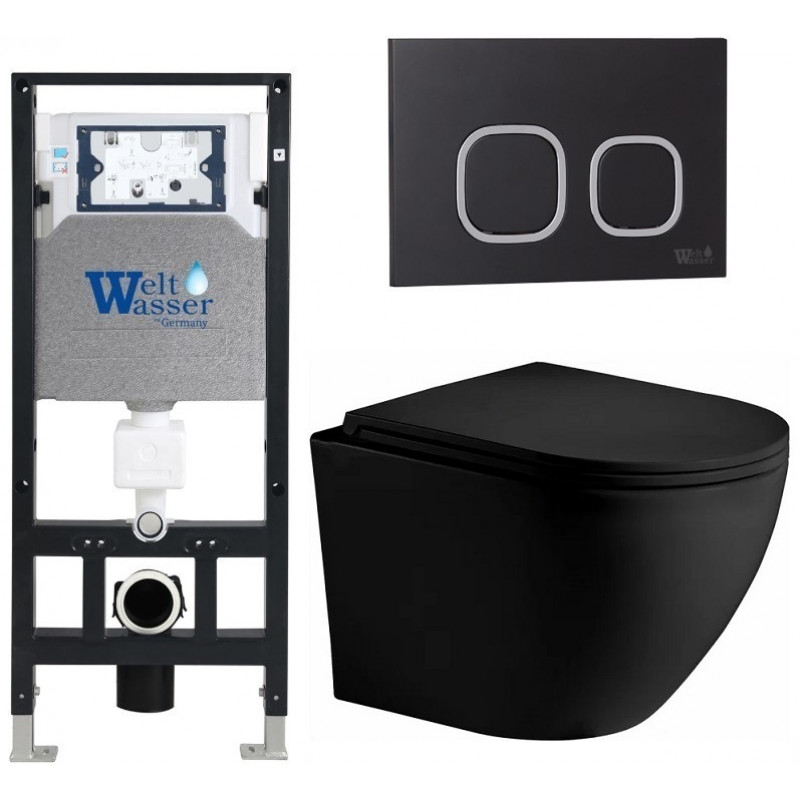 Подвесной унитаз с инсталляцией WeltWasser Amberg 506 / Merzbach 043 XL MT-BL / Amberg RD-BL 10000014117 черный матовый