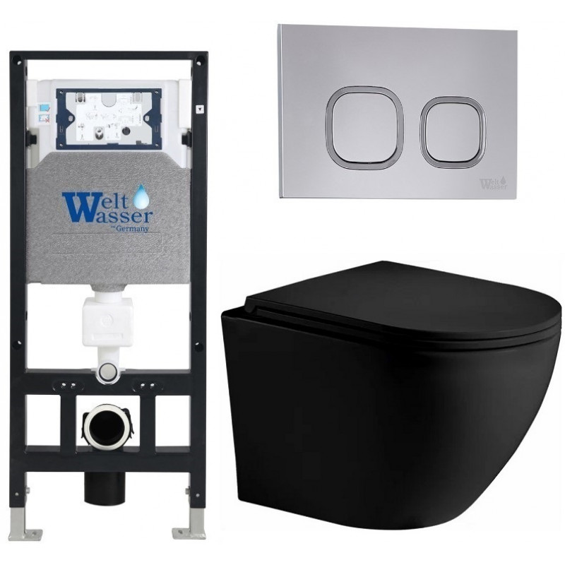 Подвесной унитаз с инсталляцией WeltWasser Amberg 506 / Merzbach 043 XL MT-BL / Amberg RD-CR 10000014118 черный матовый