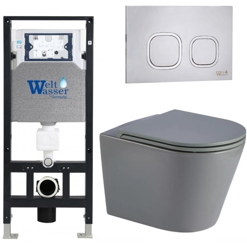 Подвесной унитаз с инсталляцией WeltWasser Amberg 506 / Salzbach 041 MT-GR / Amberg RD-MT CR 10000011110 серый матовый