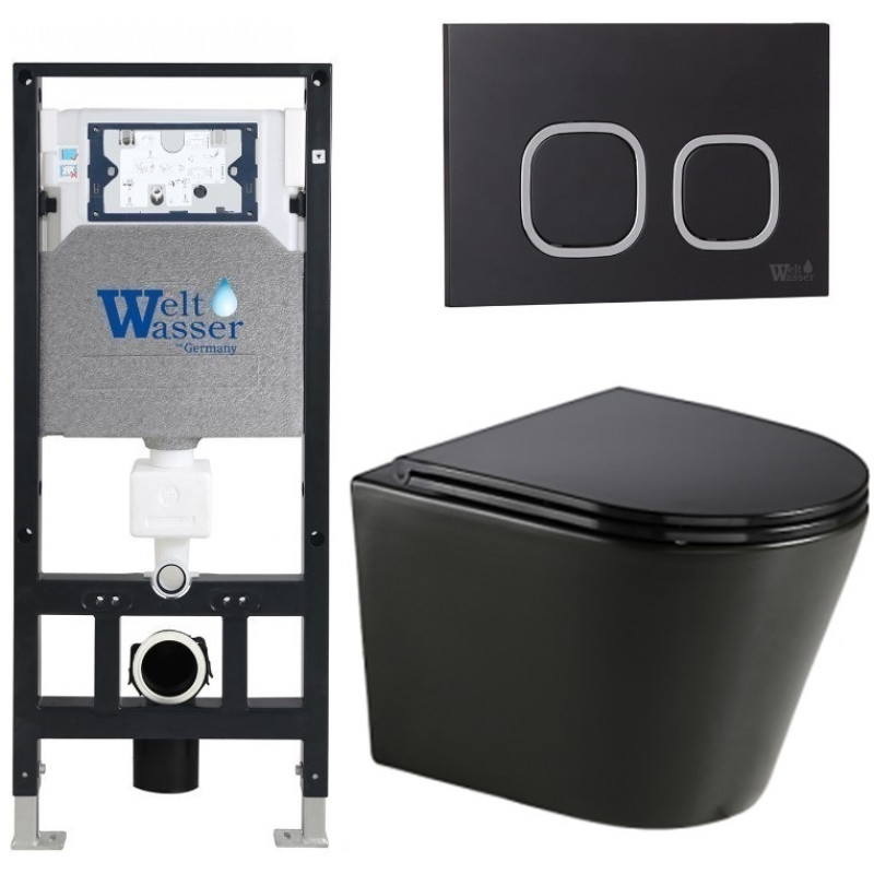 Подвесной унитаз с инсталляцией WeltWasser Amberg 506 / Salzbach 043 GL-BL / Amberg RD-BL 10000013462 черный глянцевый