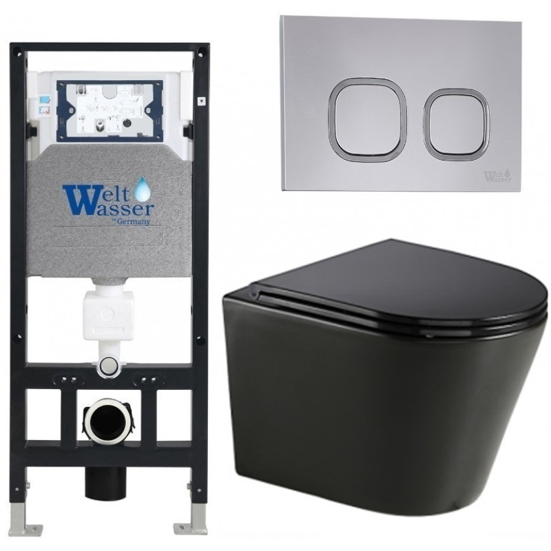 Подвесной унитаз с инсталляцией WeltWasser Amberg 506 / Salzbach 043 GL-BL / Amberg RD-CR 10000013473 черный глянцевый