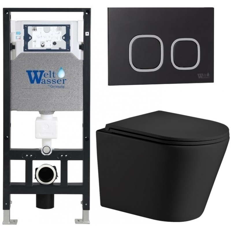 Подвесной унитаз с инсталляцией WeltWasser Amberg 506 / Salzbach 043 MT-BL / Amberg RD-BL 10000011537 черный матовый
