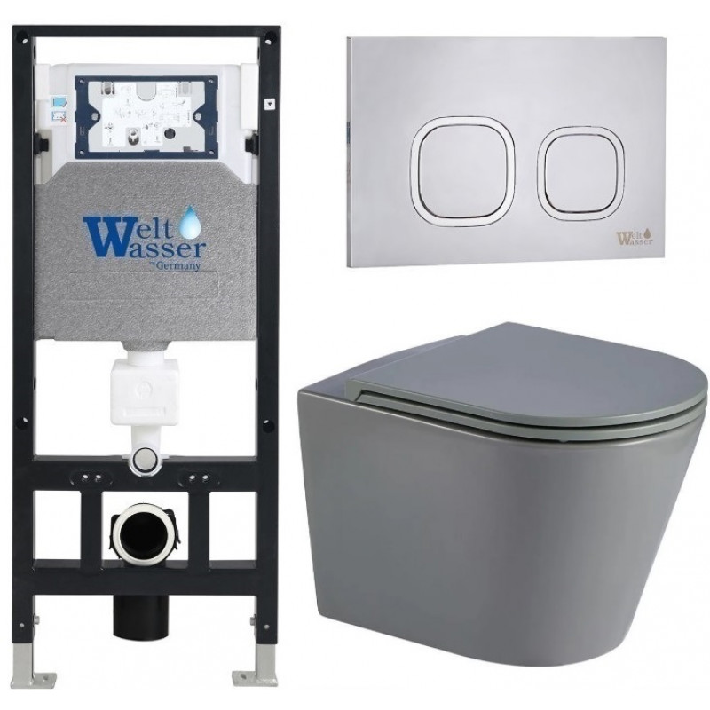 Подвесной унитаз с инсталляцией WeltWasser Amberg 506 / Salzbach 043 MT-GR / Amberg RD-MT CR 10000011579 серый матовый