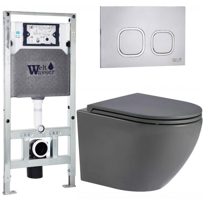 Подвесной унитаз с инсталляцией WeltWasser Amberg 506 ST / Merzbach 043 MT-GR / Amberg RD-MT CR 10000011387 серый матовый