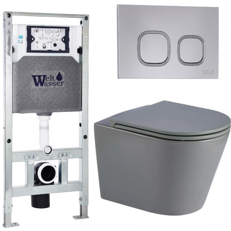 Подвесной унитаз с инсталляцией WeltWasser Amberg 506 ST / Salzbach 041 MT-GR / Amberg RD-CR 10000011104 серый матовый