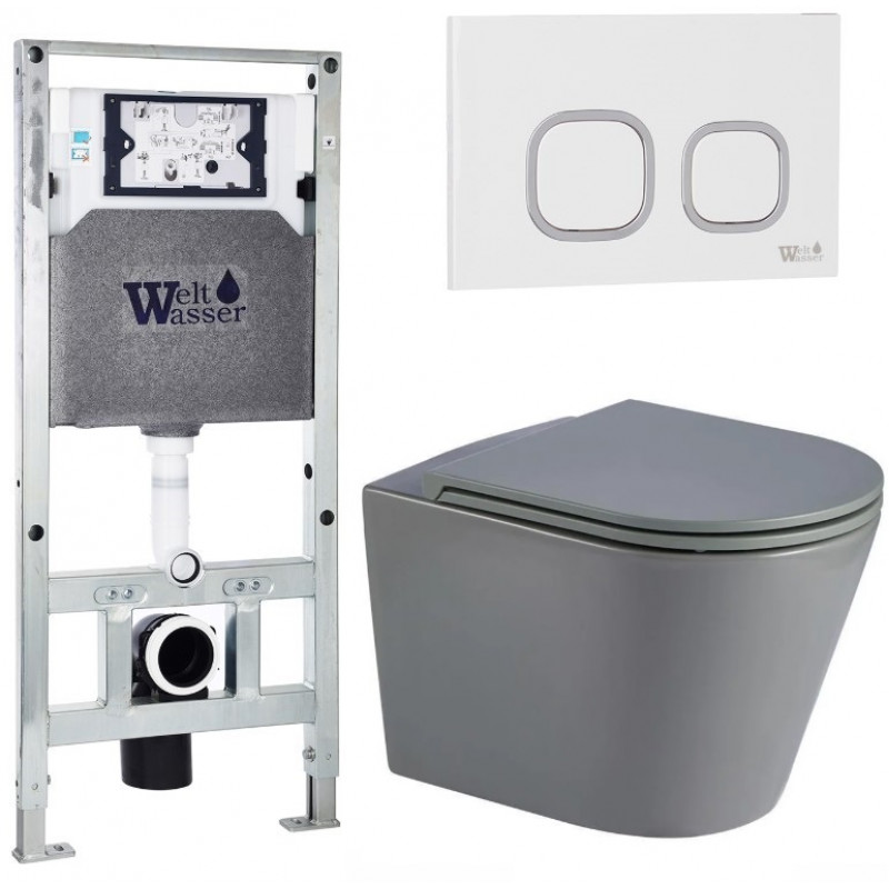 Подвесной унитаз с инсталляцией WeltWasser Amberg 506 ST / Salzbach 041 MT-GR / Amberg RD-WT 10000011106 серый матовый