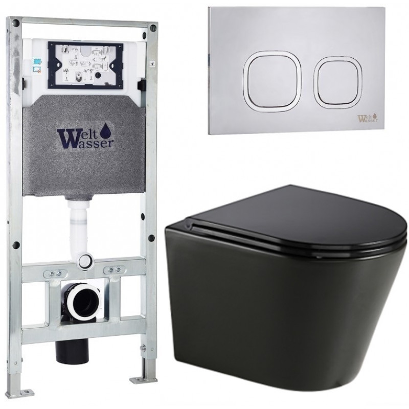 Подвесной унитаз с инсталляцией WeltWasser Amberg 506 ST / Salzbach 043 GL-BL / Amberg RD-MT CR 10000013479 черный глянцевый