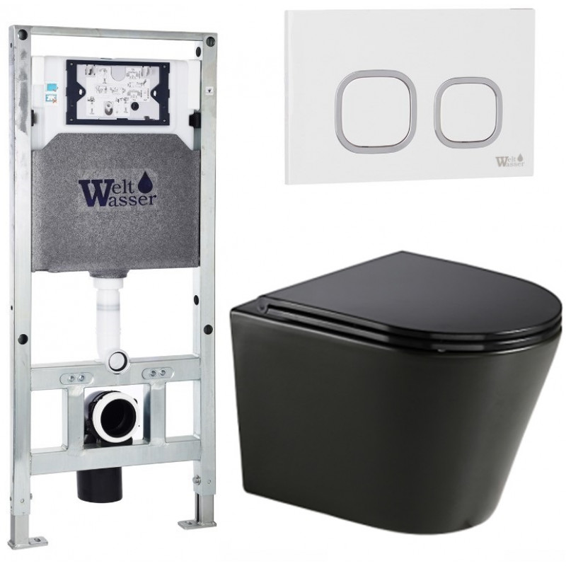 Подвесной унитаз с инсталляцией WeltWasser Amberg 506 ST / Salzbach 043 GL-BL / Amberg RD-WT 10000013480 черный глянцевый