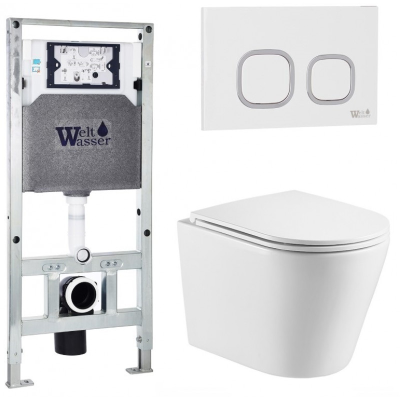 Подвесной унитаз с инсталляцией WeltWasser Amberg 506 ST / Salzbach 043 GL-WT / Amberg RD-WT 10000011507 белый глянцевый