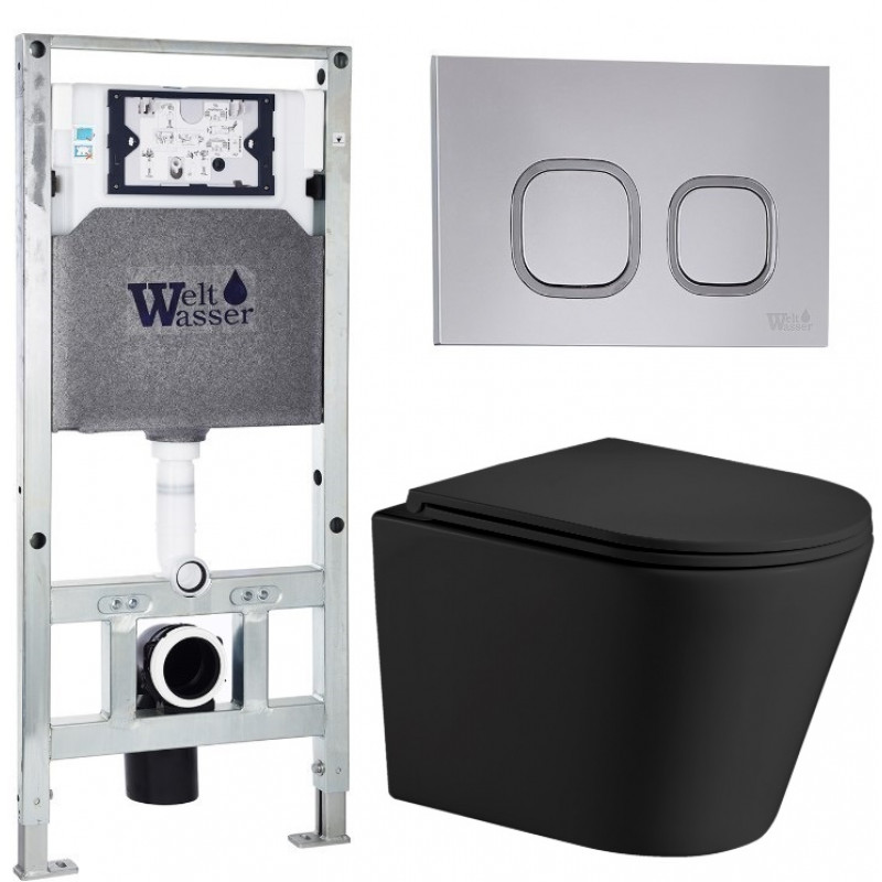 Подвесной унитаз с инсталляцией WeltWasser Amberg 506 ST / Salzbach 043 MT-BL / Amberg RD-CR 10000011543 черный матовый