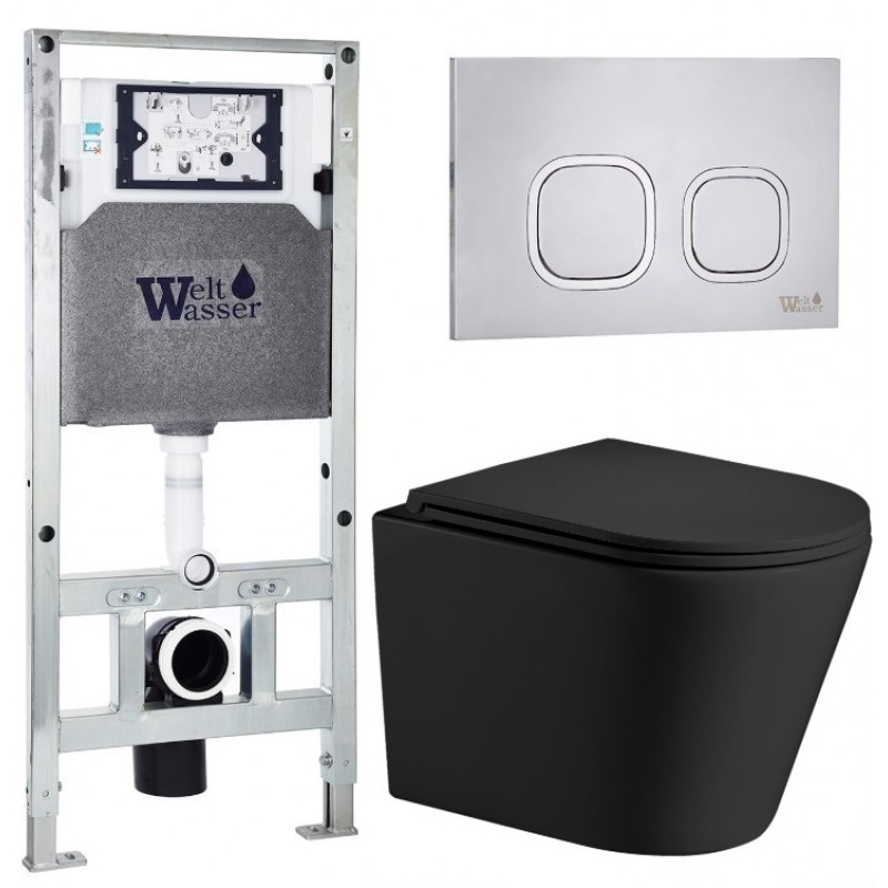 Подвесной унитаз с инсталляцией WeltWasser Amberg 506 ST / Salzbach 043 MT-BL / Amberg RD-MT CR 10000011544 черный матовый