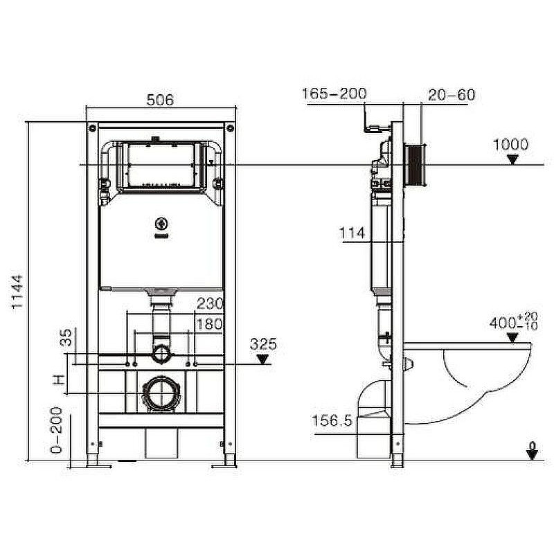 - Размеры инсталляции (ШхВхГ): 506х1144х260 мм.