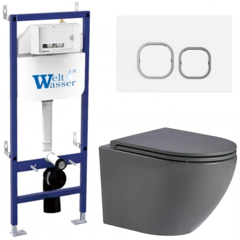 Подвесной унитаз с инсталляцией WeltWasser Bamberg 460 / Merzbach 043 MT-GR / Bamberg WT 10000013608 серый матовый