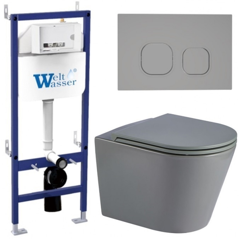 Подвесной унитаз с инсталляцией WeltWasser Bamberg 460 / Salzbach 041 MT-GR / Bamberg CR 10000013509 серый матовый