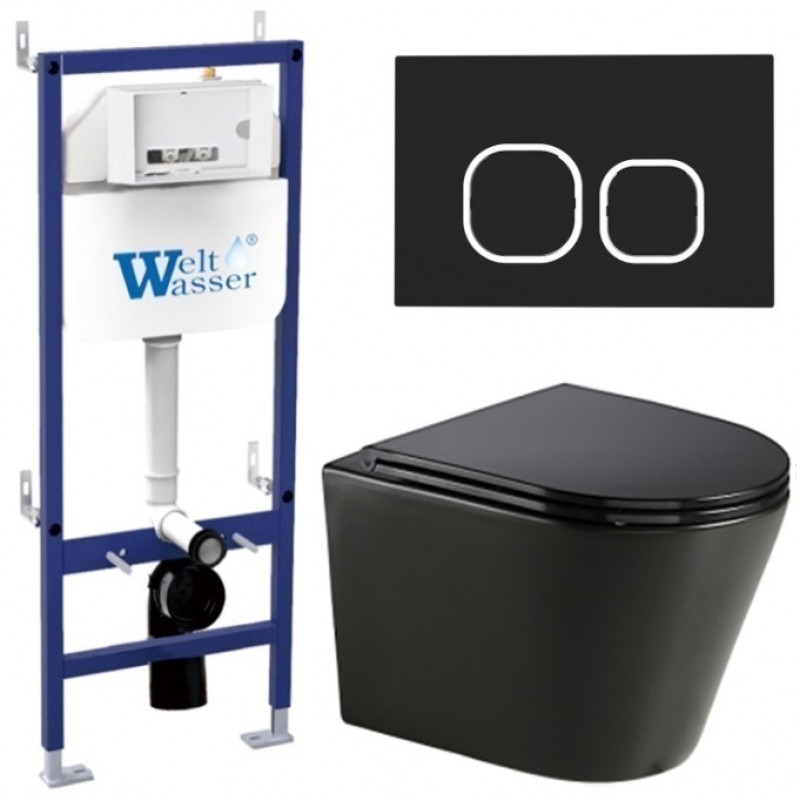 Подвесной унитаз с инсталляцией WeltWasser Bamberg 460 / Salzbach 043 GL-BL / Bamberg BL 10000013482 черный глянцевый