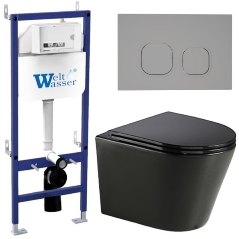 Подвесной унитаз с инсталляцией WeltWasser Bamberg 460 / Salzbach 043 GL-BL / Bamberg BL 10000013482 черный глянцевый