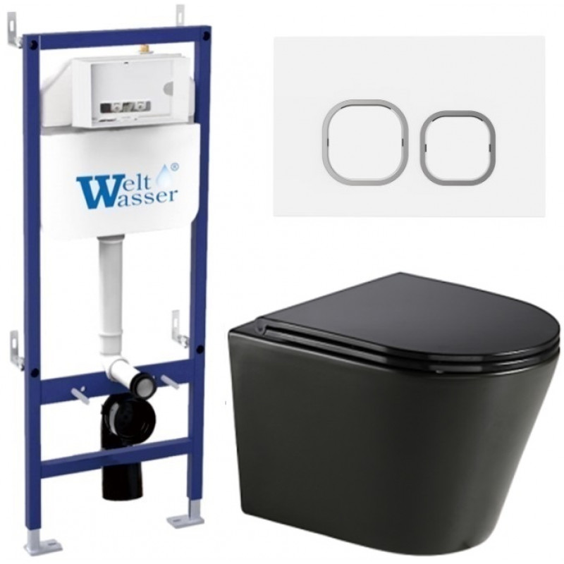 Подвесной унитаз с инсталляцией WeltWasser Bamberg 525 / Merzbach 043 XL MT-BL / Bamberg CR 10000014134 черный матовый