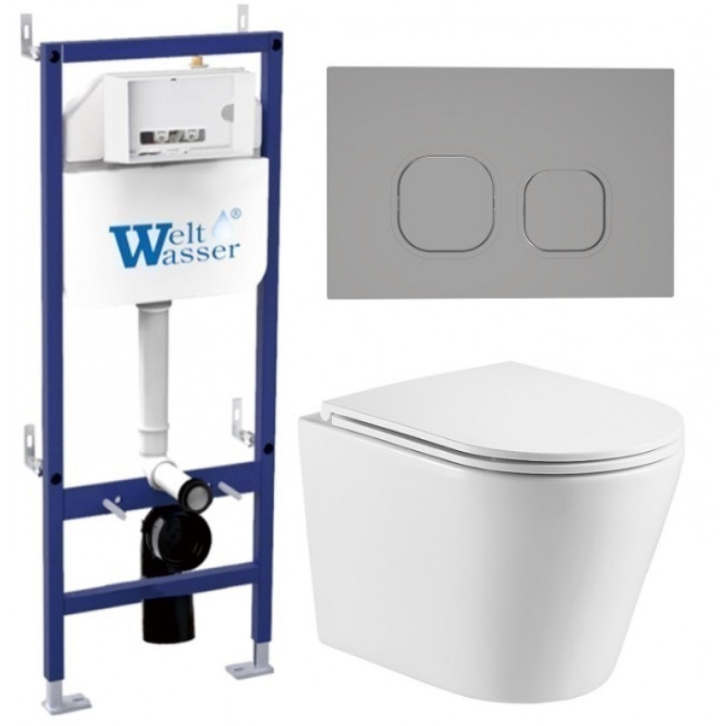 Подвесной унитаз с инсталляцией WeltWasser Bamberg 460 / Salzbach 043 GL-WT / Bamberg CR 10000012932 белый глянцевый