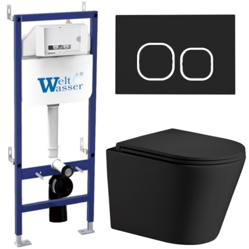 Подвесной унитаз с инсталляцией WeltWasser Bamberg 460 / Salzbach 043 MT-BL / Bamberg BL 10000012941 черный матовый
