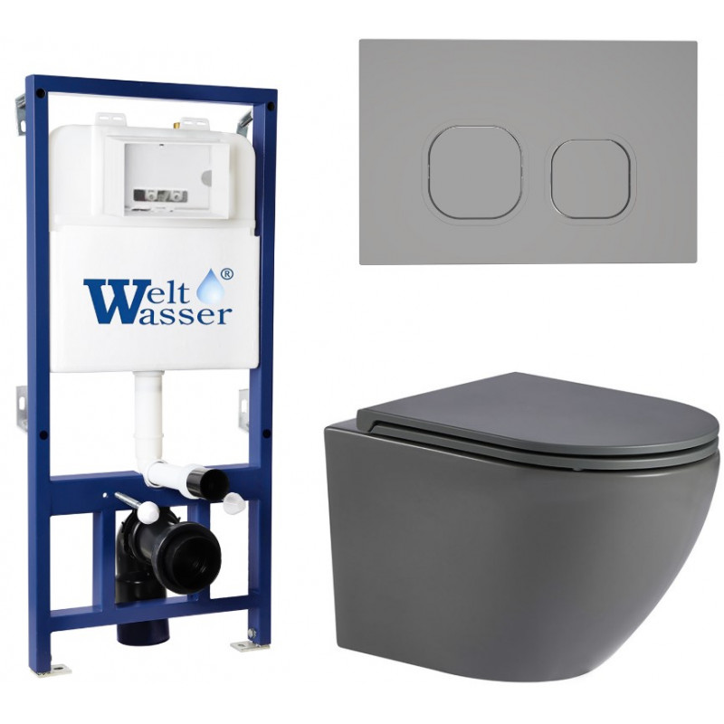 Подвесной унитаз с инсталляцией WeltWasser Bamberg 525 / Merzbach 041 MT-GR / Bamberg CR 10000013598 матовый серый