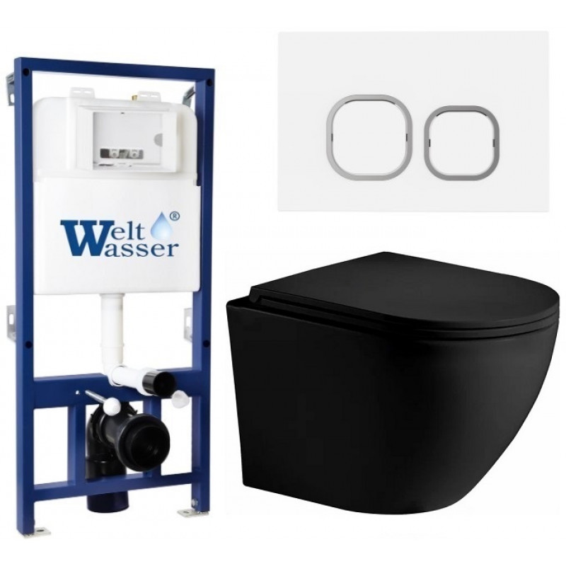 Подвесной унитаз с инсталляцией WeltWasser Bamberg 525 / Merzbach 043 XL MT-BL / Bamberg WT 10000014135 черный матовый