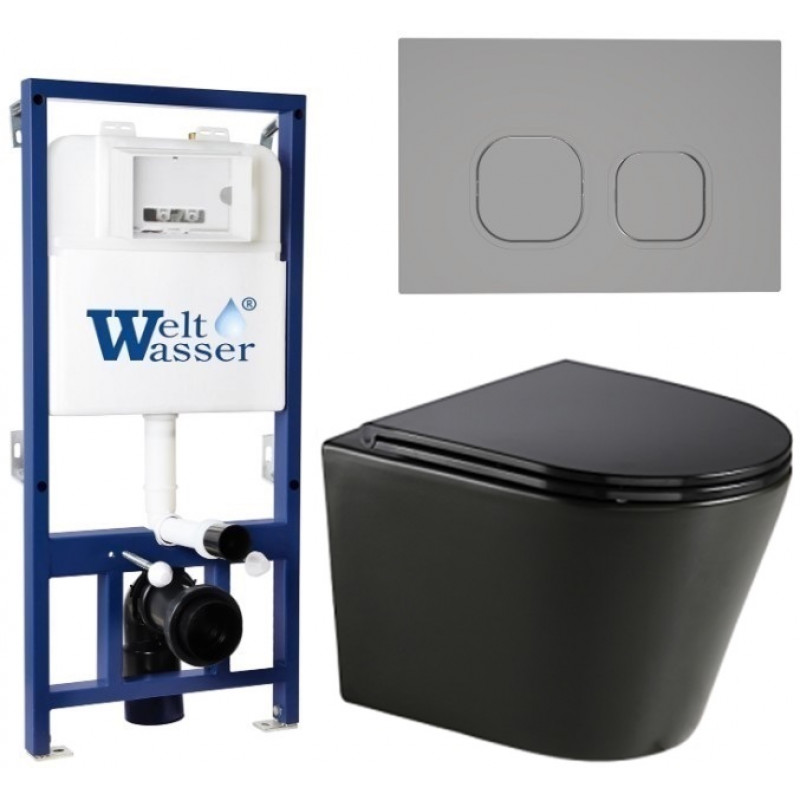 Подвесной унитаз с инсталляцией WeltWasser Bamberg 525 / Salzbach 043 GL-BL / Bamberg CR 10000013487 черный глянцевый