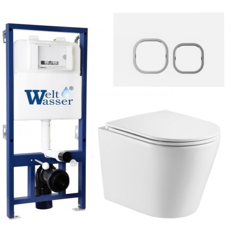 Подвесной унитаз с инсталляцией WeltWasser Bamberg 525 / Salzbach 043 GL-WT / Bamberg WT 10000012936 белый глянцевый