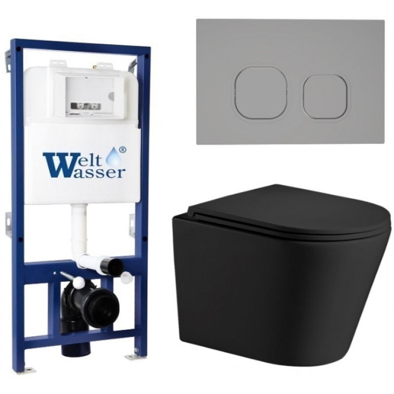 Подвесной унитаз с инсталляцией WeltWasser Bamberg 525 / Salzbach 043 MT-BL / Bamberg CR 10000012945 черный матовый