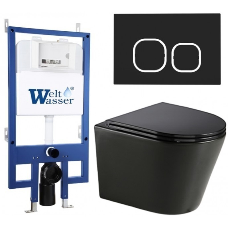 Подвесной унитаз с инсталляцией WeltWasser Bamberg 545 / Salzbach 043 GL-BL / Bamberg BL 10000013490 черный глянцевый