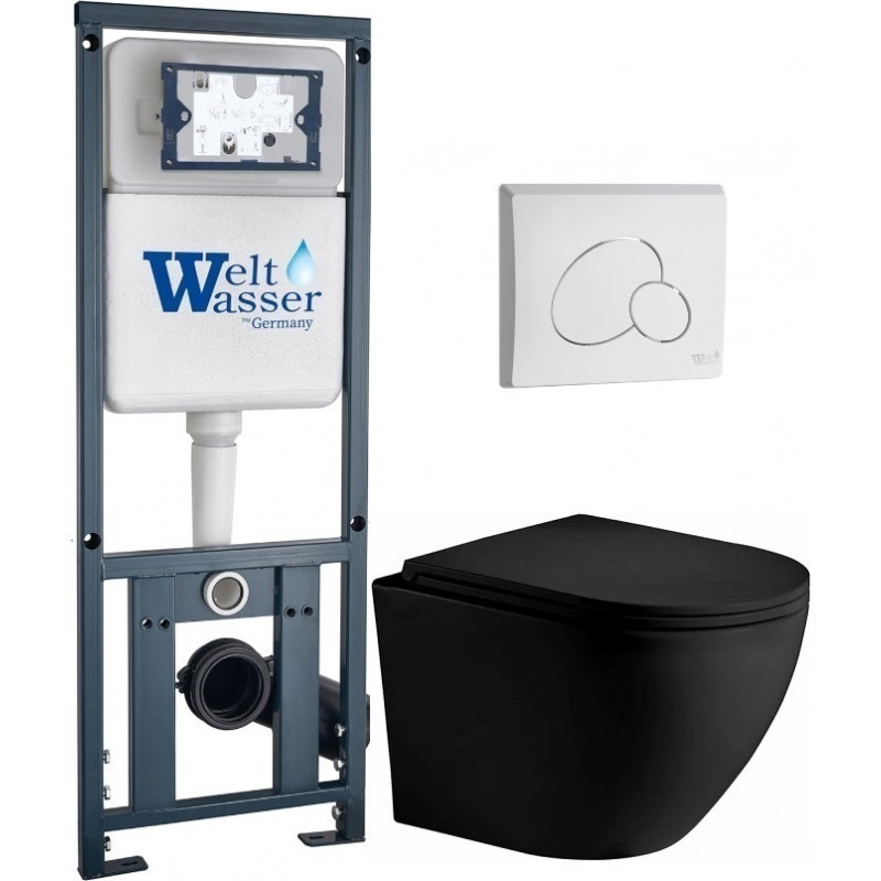 Подвесной унитаз с инсталляцией WeltWasser Marberg 410 / Merzbach 043 XL MT-BL / MAR 410 RD GL-WT 10000014141 черный матовый