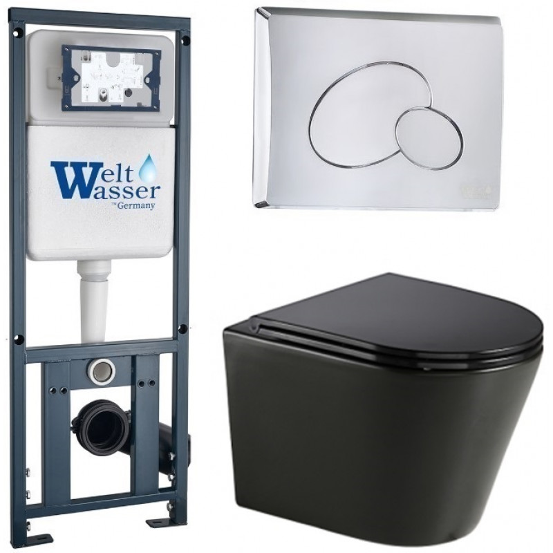 Подвесной унитаз с инсталляцией WeltWasser Marberg 410 / Salzbach 043 GL-BL / MAR 410 RD-CR 10000013494 черный глянцевый
