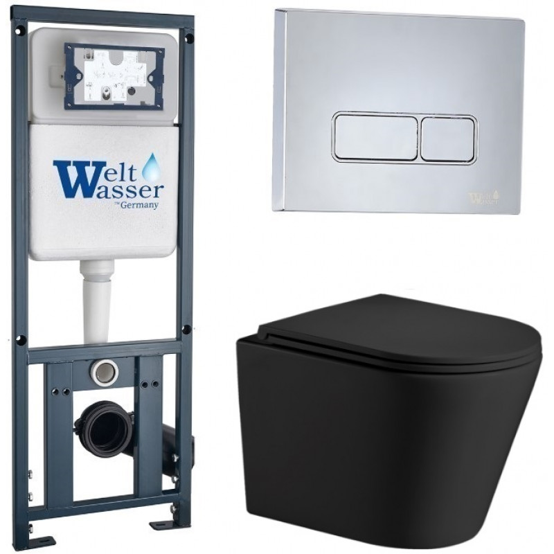 Подвесной унитаз с инсталляцией WeltWasser Marberg 410 / Salzbach 043 MT-BL / MAR 410 SE CR 10000011550 черный матовый