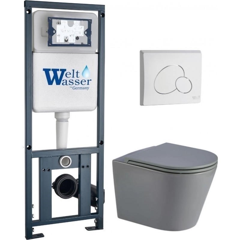 Подвесной унитаз с инсталляцией WeltWasser Marberg 410 / Salzbach 043 MT-GR / MAR 410 RD GL-WT 10000011588 серый матовый