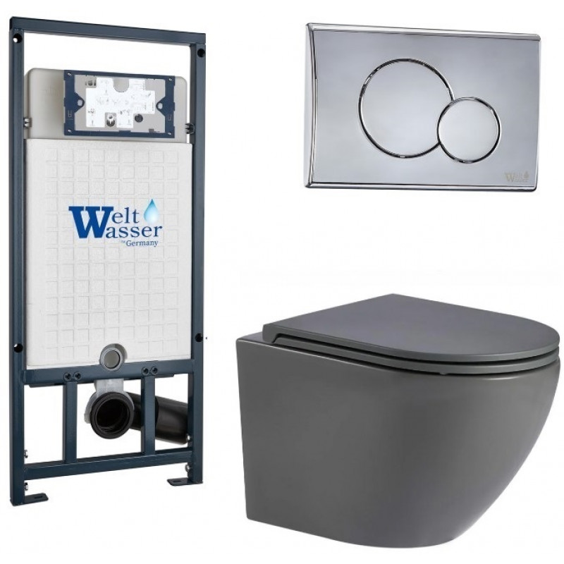Подвесной унитаз с инсталляцией WeltWasser Marberg 507 / Merzbach 043 MT-GR / MAR 507 RD-CR 10000011397 серый матовый