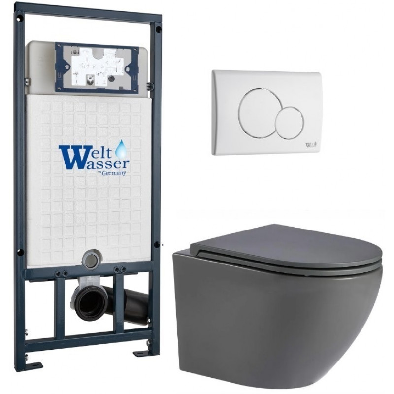 Подвесной унитаз с инсталляцией WeltWasser Marberg 507 / Merzbach 043 MT-GR / MAR 507 RD GL-WT 10000011398 серый матовый