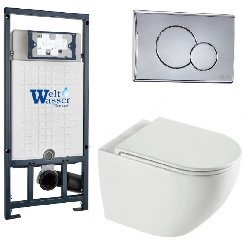 Подвесной унитаз с инсталляцией WeltWasser Marberg 507 / Merzbach 043 XL GL-WT / MAR 507 RD-CR 10000013807 белый глянцевый