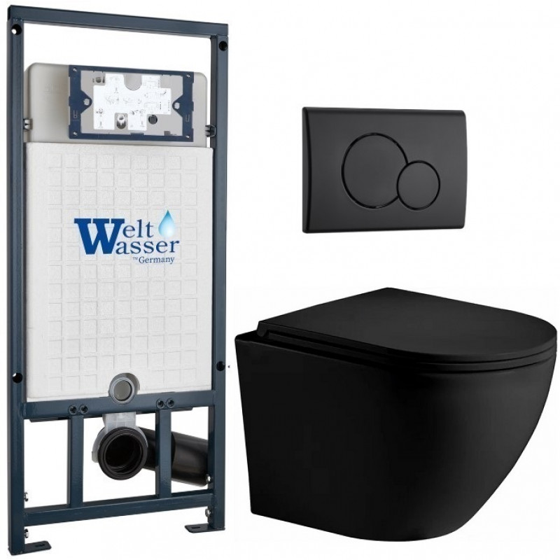 Подвесной унитаз с инсталляцией WeltWasser Marberg 507 / Merzbach 043 XL MT-BL / MAR 507 RD MT-BL 10000014149 черный матовый