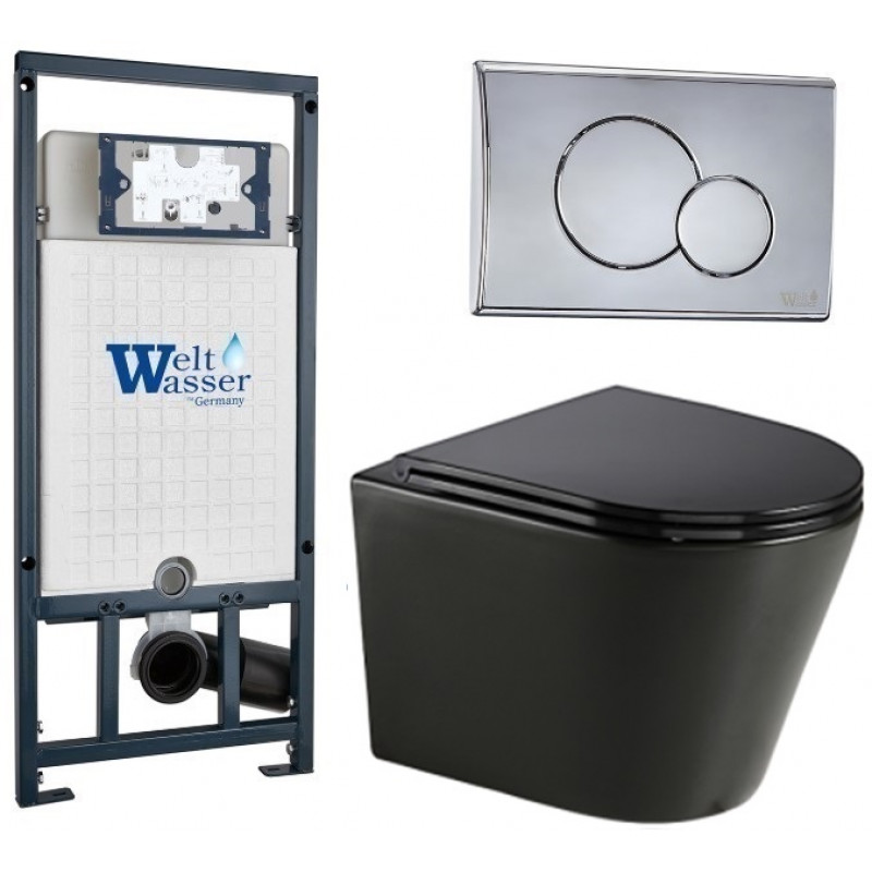 Подвесной унитаз с инсталляцией WeltWasser Marberg 507 / Salzbach 043 GL-BL / MAR 507 RD-CR 10000013501 черный глянцевый