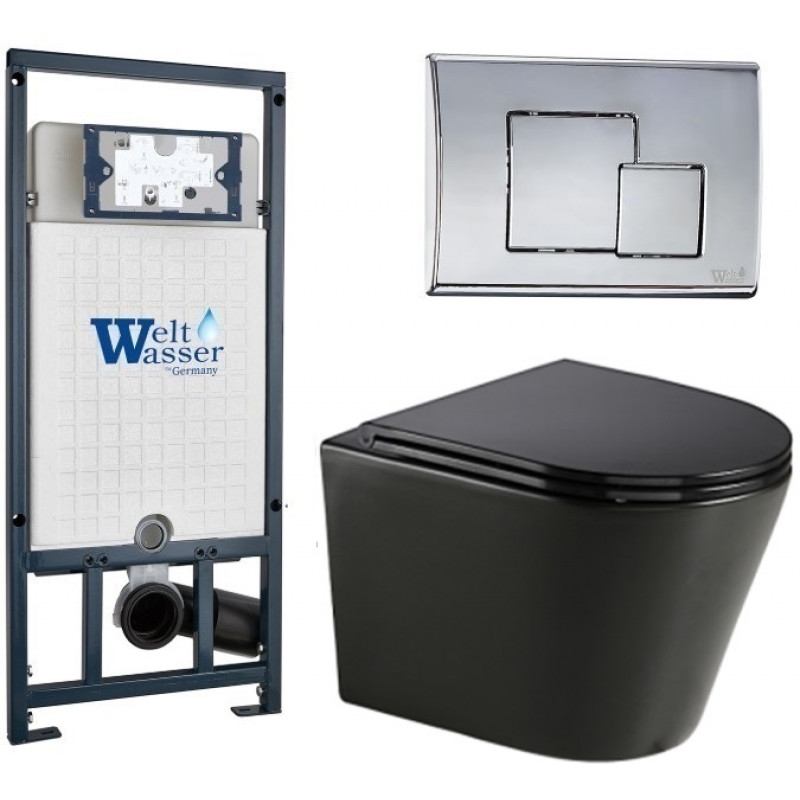 Подвесной унитаз с инсталляцией WeltWasser Marberg 507 / Salzbach 043 GL-BL / MAR 507 SE CR 10000013504 черный глянцевый