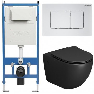 Комплект 3 в 1: инсталляция Grossman 900.K31.01.000, клавиша Grossman 700.K31.04.01M.01M белый матовый, унитаз Grossman GR-4411BMS.