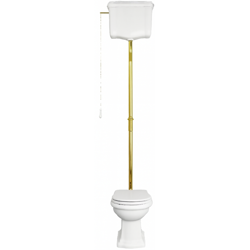Механизм слива для высокого бачка Kerasan New Catis 754591 с держателем, ручка белая (слева или справа), без трубы.