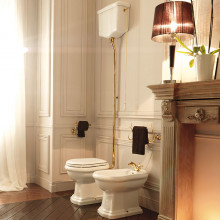 Напольный унитаз Kerasan Retro 101001 со сливом в пол из фарфора с системой антивсплеск и с грязеотталкивающим покрытием.