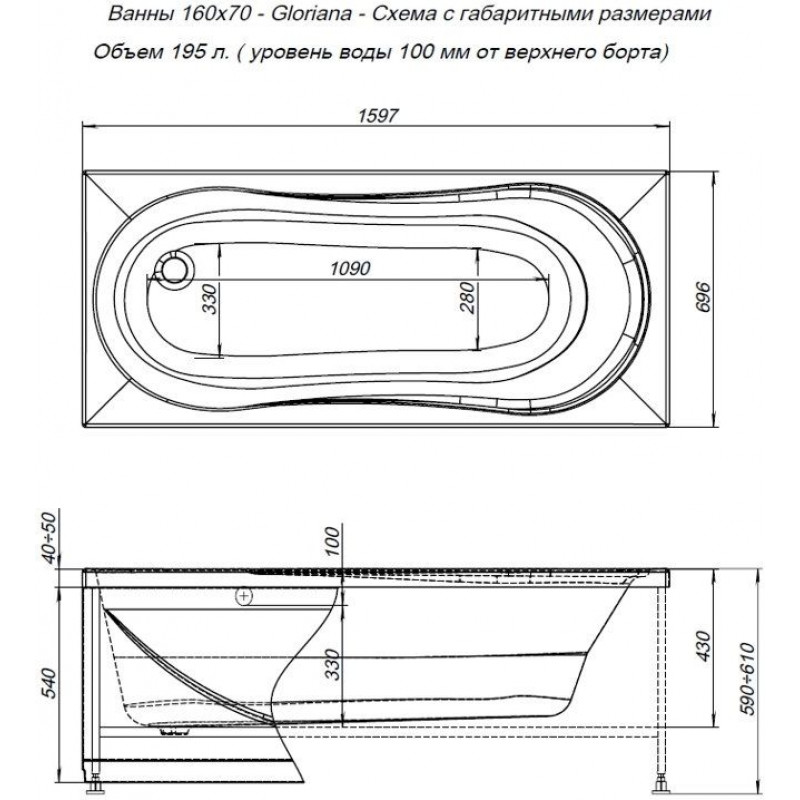 Акриловая ванна Aquanet Gloriana 160x70 создана с учетом модных тенденций. Она имеет прямоугольную форму. При длине 1600 мм и ширине 700 мм ванна обладает изысканной формой чаши глубиной 330 мм, где комфортно принимать водные процедуры. Она вмещает 195 литров воды. При монтаже ванны в помещении следует предусмотреть, что она универсальная. Представленная модель выдержит более 300 кг.