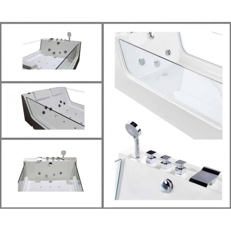 Современная акриловая гидромассажная ванна Ceruttispa C-454 – выполнена из 100% акрила и стекла. Ударопрочное стекло толщиной 12 мм без металлической окантовки безопасно и придает ванне современный дизайн.удобна и безопасна. Дно с антискользящим покрытием предупреждает падения. С помощью пульта удобно управлять функциями гидромассажной ванны.