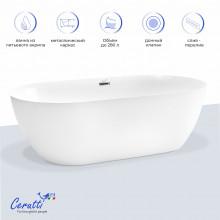 Ванна Cerutti SPA Skye CT10513 выполнена из качественного акрила, который хорошо сохраняет тепло и тактильно приятен. Устойчивость и практичность ванны достигается армированием дна стекловолокном и использованием прочного металлического каркаса. Помимо этого, в местах крепежа каркаса установлены дополнительные усиленные закладные для придания жесткости конструкции, что гарантирует максимально долгий срок эксплуатации ванны.