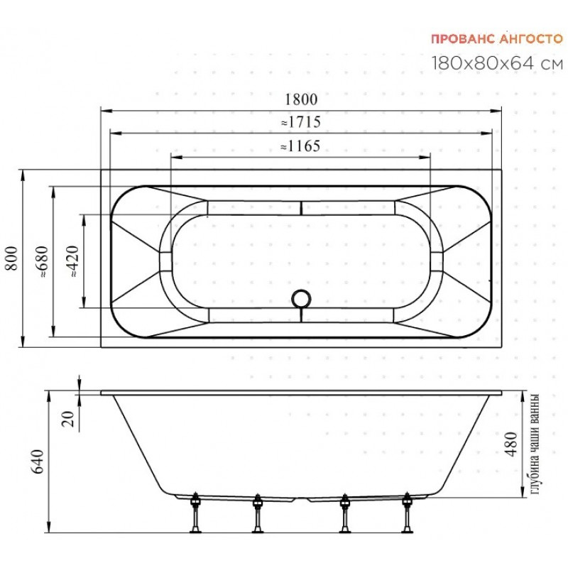 Акриловая ванна Радомир Прованс Ангосто 1-01-0-0-8-185 - элегантная прямоугольная ванна, которая сочетает в себе функционал и стиль, скромность и естественность.