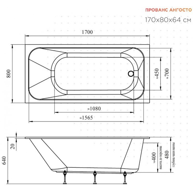 Акриловая ванна Радомир Прованс Ангосто 1-01-0-0-8-192 - элегантная прямоугольная ванна, которая сочетает в себе функционал и стиль, скромность и естественность.
