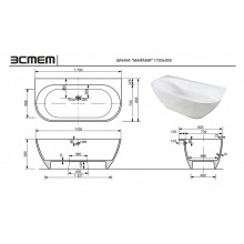 Ванна из литьевого мрамора Эстет Майами пристеночная 170х85.5