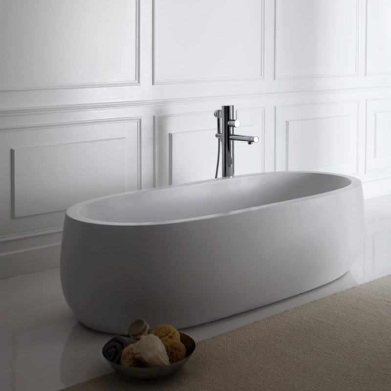 Конструкция представляет собой отдельностоящий моноблок с несъемной панелью , что обеспечивает идеальный внешний вид со всех сторон и позволяет разместить ванну в любой точке помещения, делая ее центром интерьера. Элегантная овальная форма и большой внутренний объем (240 литров) располагают к длительным и расслабляющим водным процедурам.
